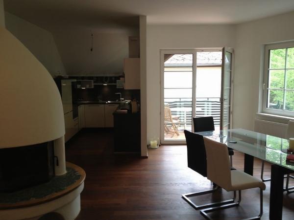 Oben angekommen wartet eine schönen großzügige 3-Zimmerwohnung auf Sie, mit einem großen Wohn-/Essbereich mit gemauertem wunderschönen Kamin und einer erst kürzlich fertiggestellten Einbauküche.